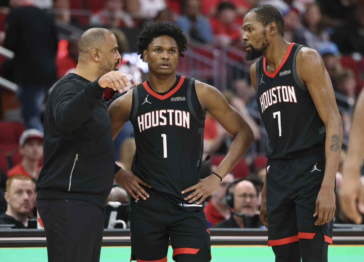 简单来说,火箭希望托举年轻人快速成长,实际上这些年轻人,都没到那个级别!申京和约基奇的差距我们早就分析很多遍,申京任何跑动,都是为了自己拿到球,防守端手都不伸,逼得杜兰特在场上直接开怼(对战黄蜂时就被记者抓到杜兰特抱怨申京,哪怕伸一下手)。阿门没有投射,也拖空间,1号位的位置将他短板放大,对手根本不管他。谢泼德能投也敢投,但命中率直线下降,防守端成了无底洞。至于小贾,发挥一场要低迷好几场。火箭管理层和教练组,能看到的数据肯定比我们更详细。